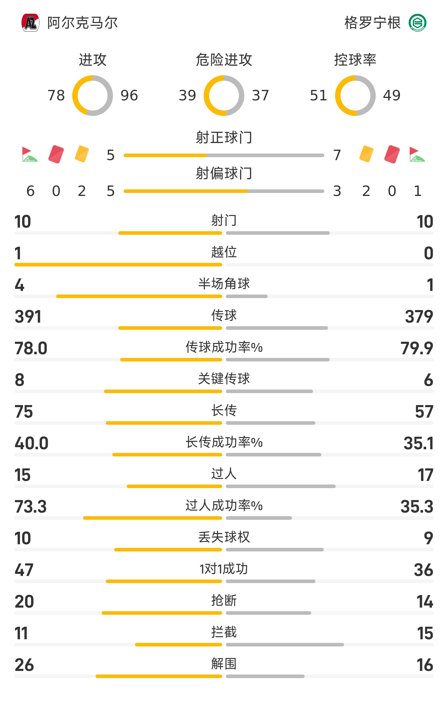 阿尔克马尔首发阵容:41-佐特、34-德威特(77’15-查韦斯)、5-佩内特拉、30-卡修斯、3-高斯、8-克拉西、10-米吉南(84’11-萨迪丘)、26-史密特(76’6-库普梅纳斯)、9-帕洛特、7-波库(77’35-梅尔丁克)、27-达尔(68’17-延森)