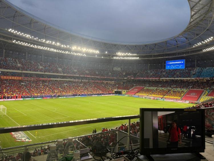 黄健翔在个人微博写道:成都蓉城x上海海港。第一次来凤凰山体育场解说。第N次来成都解说比赛。解说席放在这个位置的球场,个人还是第一次遇到,视野倒是不错,体验很独特。球场很漂亮!