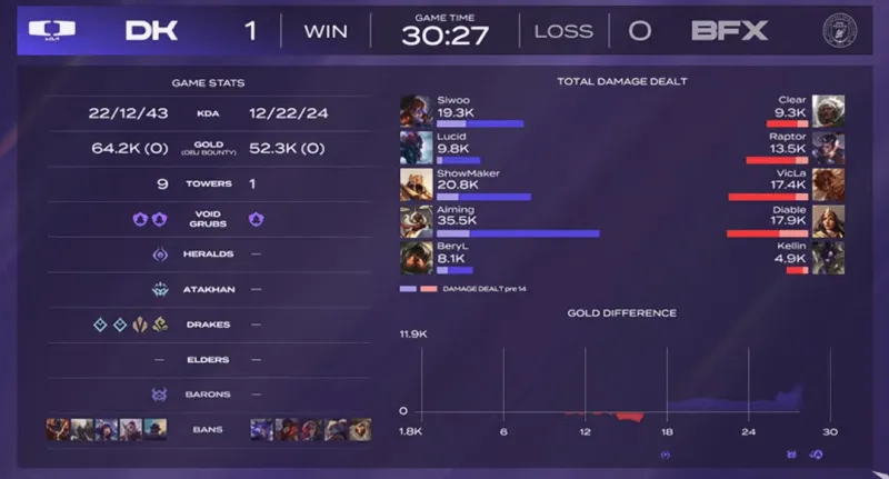 点击为双方选手评分虎扑09月04日讯 【GAME1】DK蓝色方、BFX红色方
